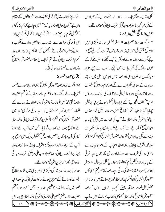 Speech – Urs Ashraful Mashaikh 2024 Dr Syed Muhammad Ashraf Jilani